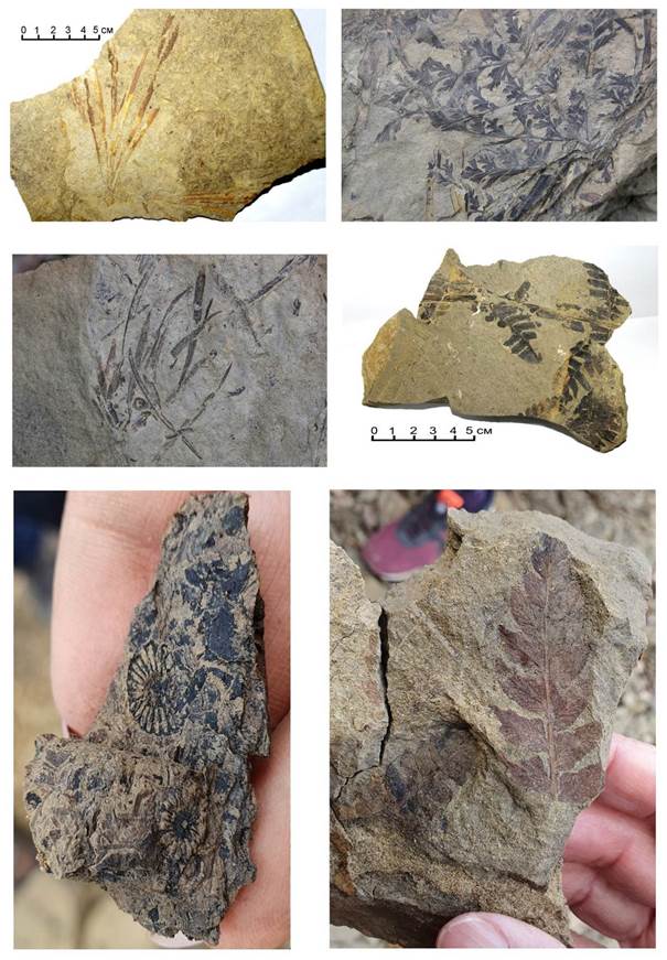 Fig. 12. Plant remains of Middle Jurassic age in coastal outcrops of the left bank of the Irkutsk Reservoir (Kovalenko et al., 2023).