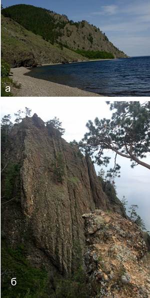 Along the western shore of Lake Baikal, in the area of the Bolshie Koty village, Bolshaya and Malaya Kadilnaya in easy accessibility, structural, igneous and metamorphic formations of the Early Precambrian (Shumikhinsky complex of moderately alkaline granites and diorites and the Zhidoi formation of the Sharyzhalgai series of the Archean), as well as the Middle Jurassic continental alluvial deposits of the Baikal mountain facies, lacustrine-proluvial and slope formations of modern can be studied literally in one route. The complex of these formations gives a complete understending both the geology of the Southern Baikal region and Siberian platform — its crystalline basement and sedimentary cover.