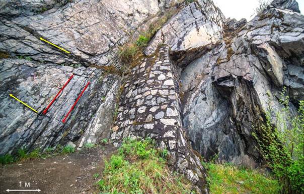 Рис. 8. Портал галереи, сложенный из тесанных каменных блоков и нетесаных глыб (циклопическая кладка). Фото автора, 2025 г.