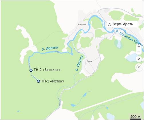 Таким образом, в результате проведенного исследования было установлено, что исток реки Иретка представляет собой протяженную территорию, на которой происходит разгрузка восходящих грунтовых вод вблизи контакта пористых карбонатных пород нижнего кембрия и слабопроницаемых терригенных пород нижней юры. Исток Иретки представляет собой интересный геологический объект, исследование которого будет продолжено. Возможно, Иретка — это не единственное место, где происходит разгрузка вод из трещиноватых и закарстованных кембрийских толщ, и следует более детально изучить территорию.