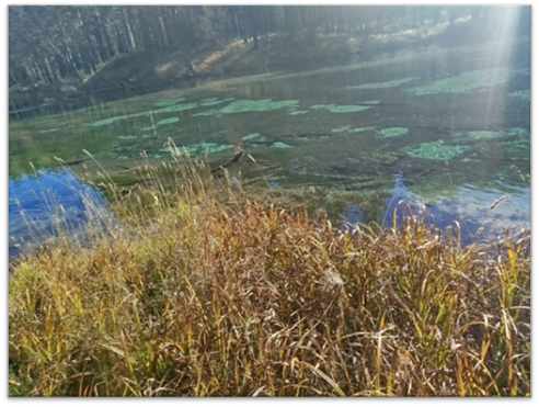 В районе местечка «Засолка» (ТН-2, рис. 19) река приобретает вид озера глубиной до 60 см. Скорость течения составляет всего 0.1 м/с. Расход воды в этой точке наблюдения увеличивается до 1.6 м3/с, то есть на участке протяженностью 500 м увеличивается в 16 раз.